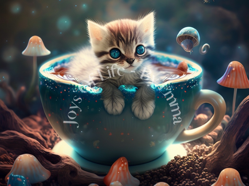 WM MUSHROOM GARDEN WITH COFFE AND KITTEN Joys Of Life -By Emma.png